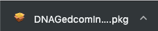 To install DNAGedcom Client for Mac, first download the installer from this link. When the file finishes downloading, you will see an icon that looks like this in the bottom corner of your browser window.
