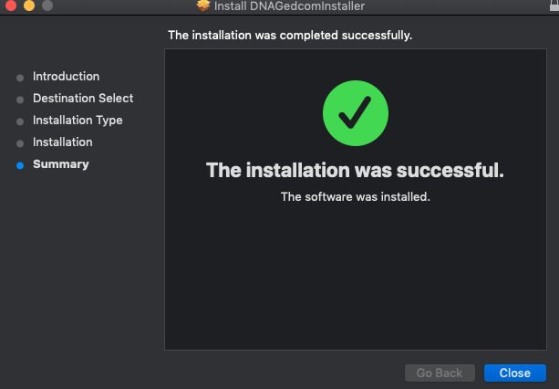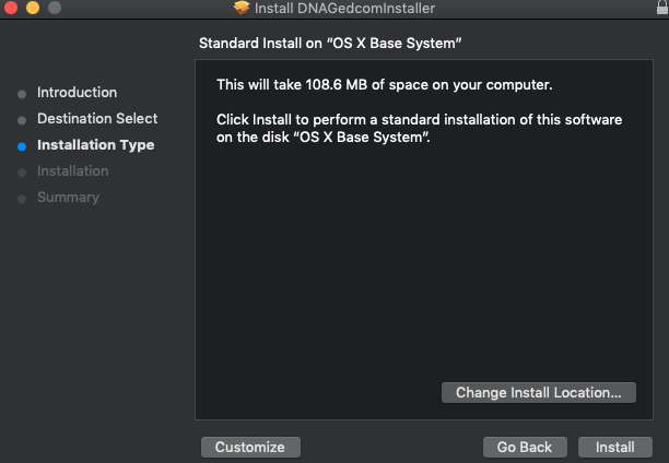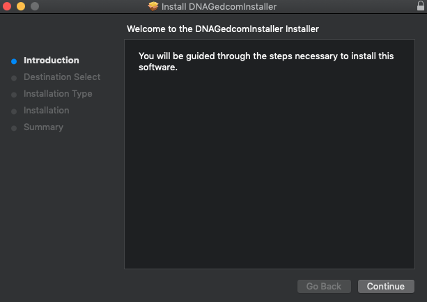 If you don't see the icon, you can run it from your Downloads folder. The file will be named DNAGedcomInstaller.pkg.