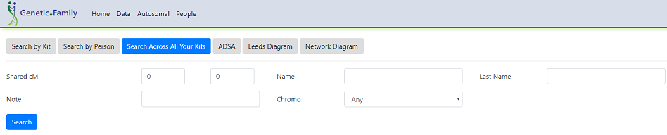 In this section, you can search across all of your kits, with the following paramters, in descending cM order: