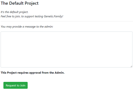 At the bottom of the page, above the Submit button, it will be noted if the Project required approval before joining. If it does not, you will immediately become a member, and can start participating. If it does require approval, the Creator and Admins will be notified of your pending request, and either approve or reject your application.