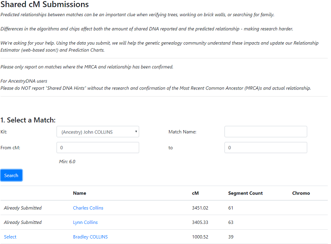 the project admin has selected that they wish to receive individual match data, you will need to search for specific matches to submit.