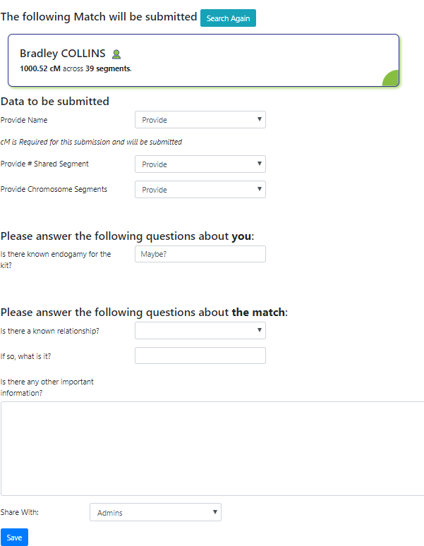 Finally, there is the option to share your data with Admins-only, or all Members. The choice is up to the member who is submitting the data - as sharing is always controlled by the owner of the data.